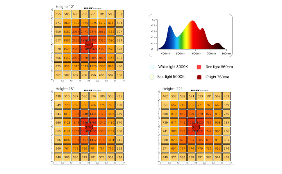 - Excellent full-spectrum- white, blue, red, and IR (3000K, 5000K, 660nm, and IR 760nm), broad-coverage light for full-term growth