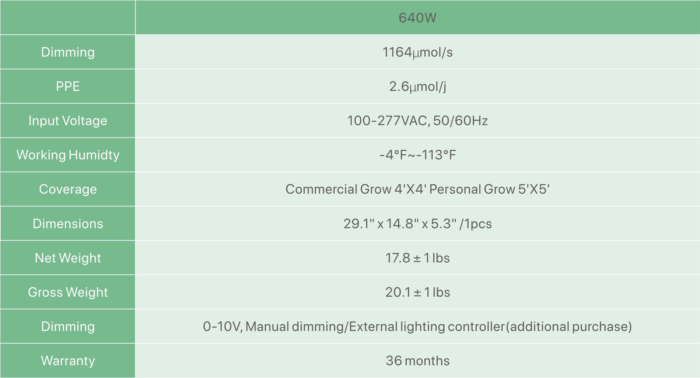 Run at 640W, Groplanner O series has amazing efficiency of 2.6mol/j and 2200mol/s, so that it provides powerful light output and uniform canopy penetration to achieve high yield.  Good heat dissipation means lower environmental heat, thus avoiding damage to plants.